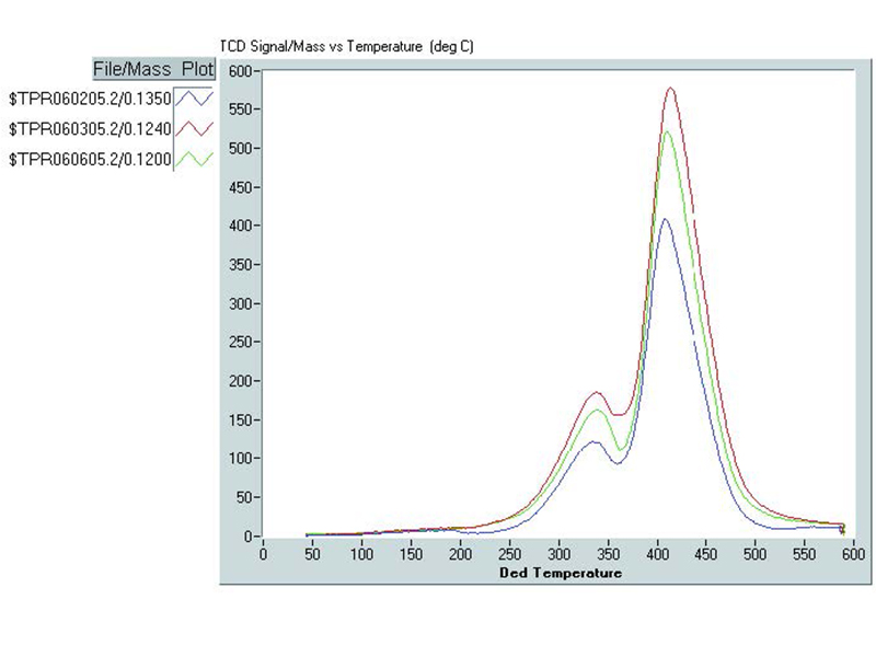 不同质量样品(10% Co+1% Re/ Al2O3)运行TPR测试的重复性。